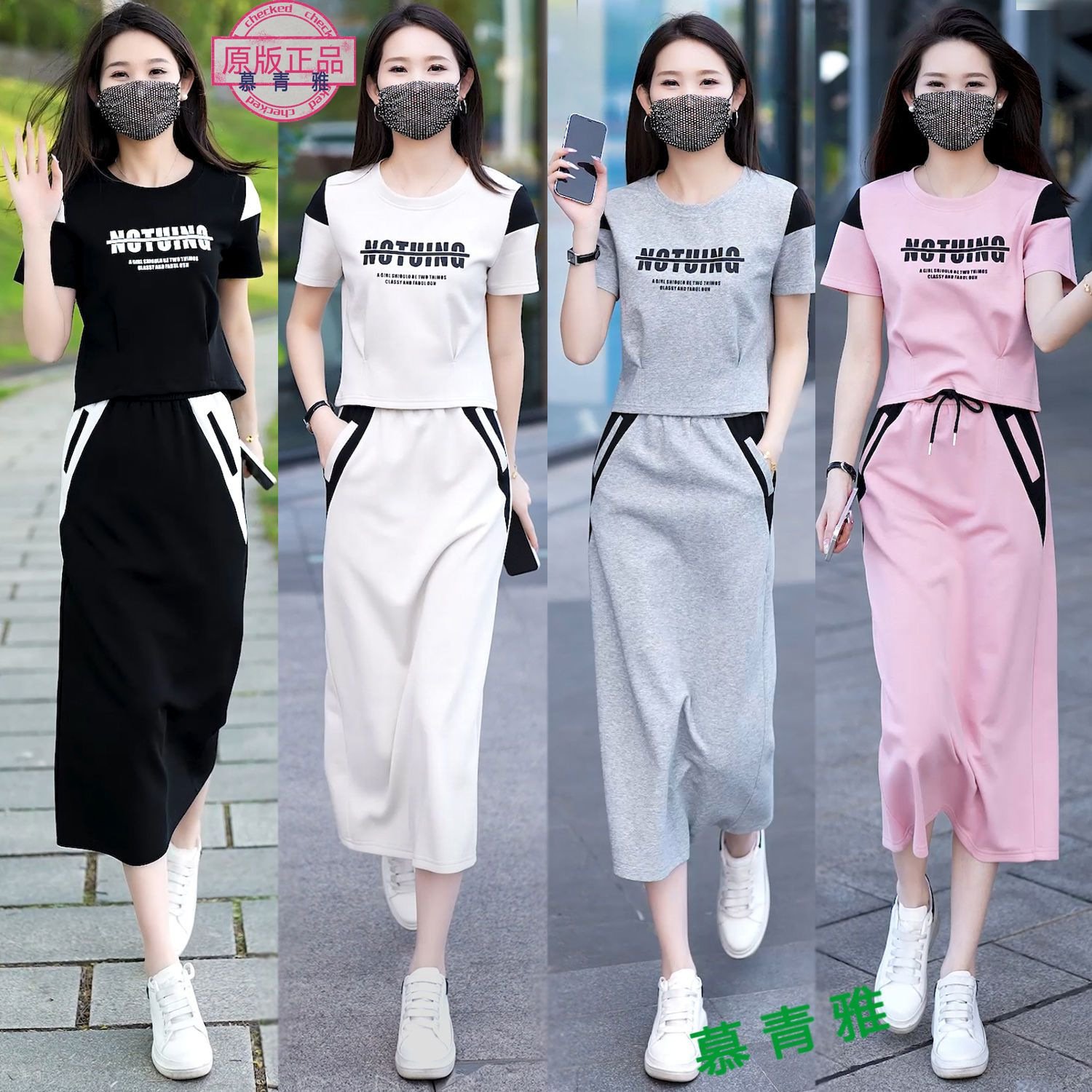 여자 패션 반팔 스커트 투피스